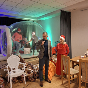 W miniony wtorek odbyło się wyjątkowe spotkanie z Mikołajem zorganizowane przez Ośrodek Pomocy Społecznej w Mszanie, w którym uczestniczyły rodziny korzystające z wsparcia Ośrodka oraz dzieci ze Świetlicy Środowiskowej w Połomi. Impreza dostarczyła dzieciom mnóstwa radości i niezapomnianych wrażeń. Na spotkaniu zjawił się zastępca wójta gminy Mszana, który powitał dzieci oraz ich rodziny, podkreślając znaczenie wspólnego spędzania czasu w okresie przedświątecznym. Na najmłodszych czekały liczne zabawy oraz atrakcje, w tym dmuchany domek Bubble House, który okazał się prawdziwym hitem wydarzenia i przez cały czas był oblegany przez dzieci.